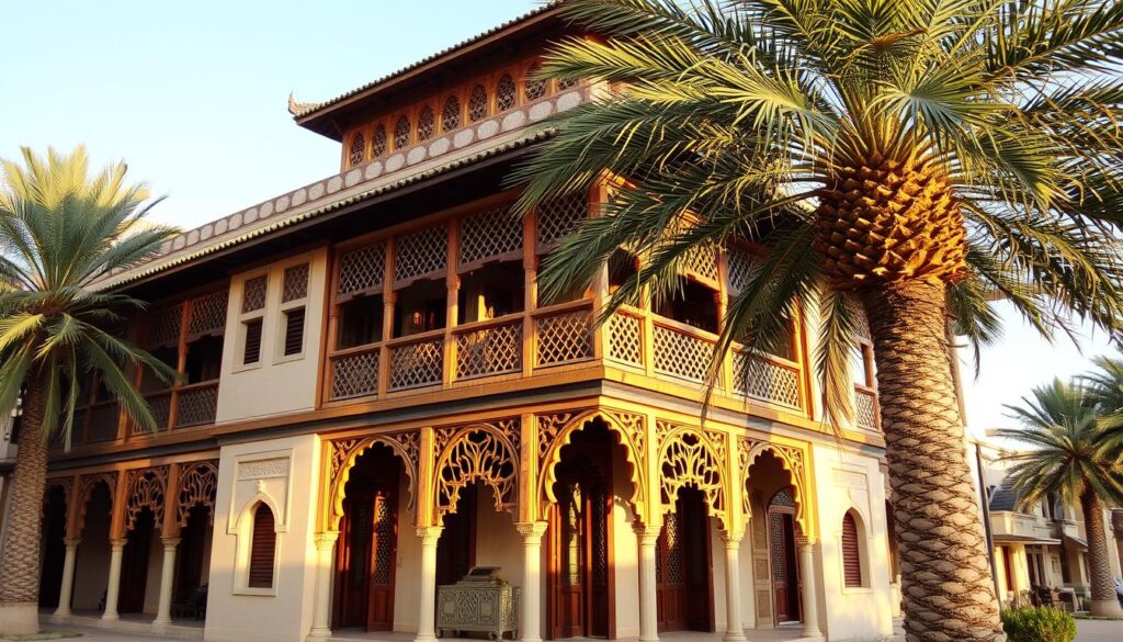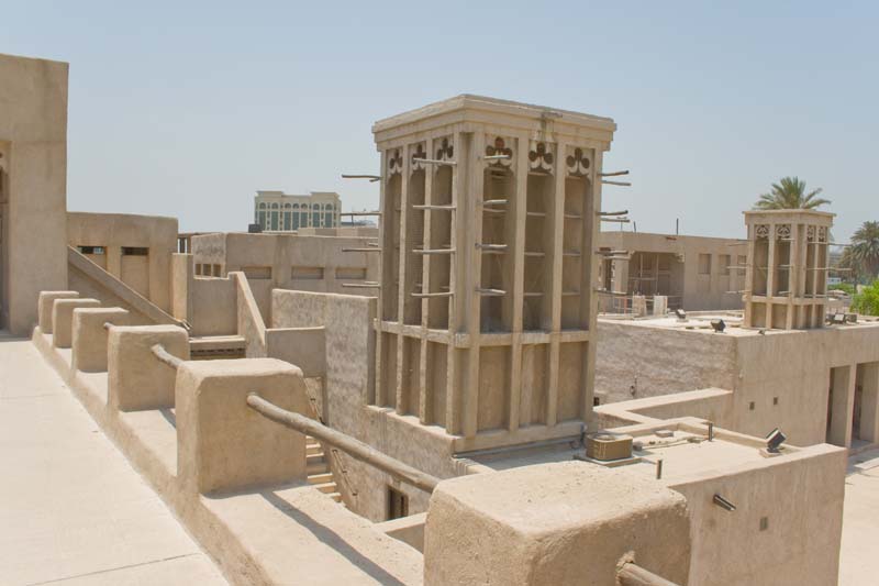 Organisée autour de cours intérieures apaisantes, véritables refuges de fraîcheur, elle intègre des tours à vent, appelées barjeel, conçues pour capter la brise et rafraîchir les espaces.